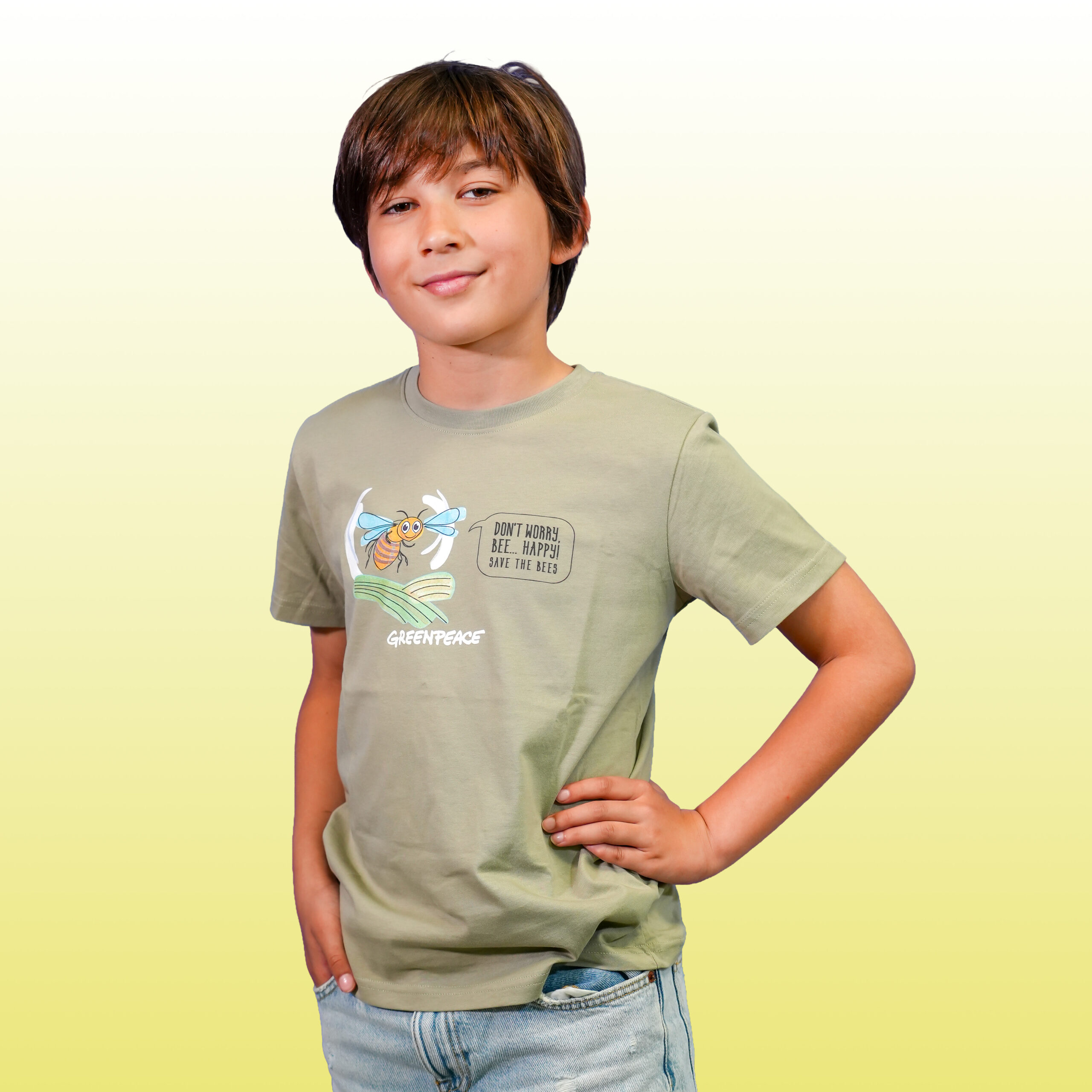 Con la T-shirt per bambini “Bee Happy” anche i nostri figli e le nostre figlie saranno promotori di un messaggio potente: il pianeta ha bisogno delle api per essere più felice. La maglietta per bambini a supporto della campagna di Greenpeace per la salvaguardia delle api e della biodiversità. Senza di loro il futuro del nostro pianeta è in bilico.